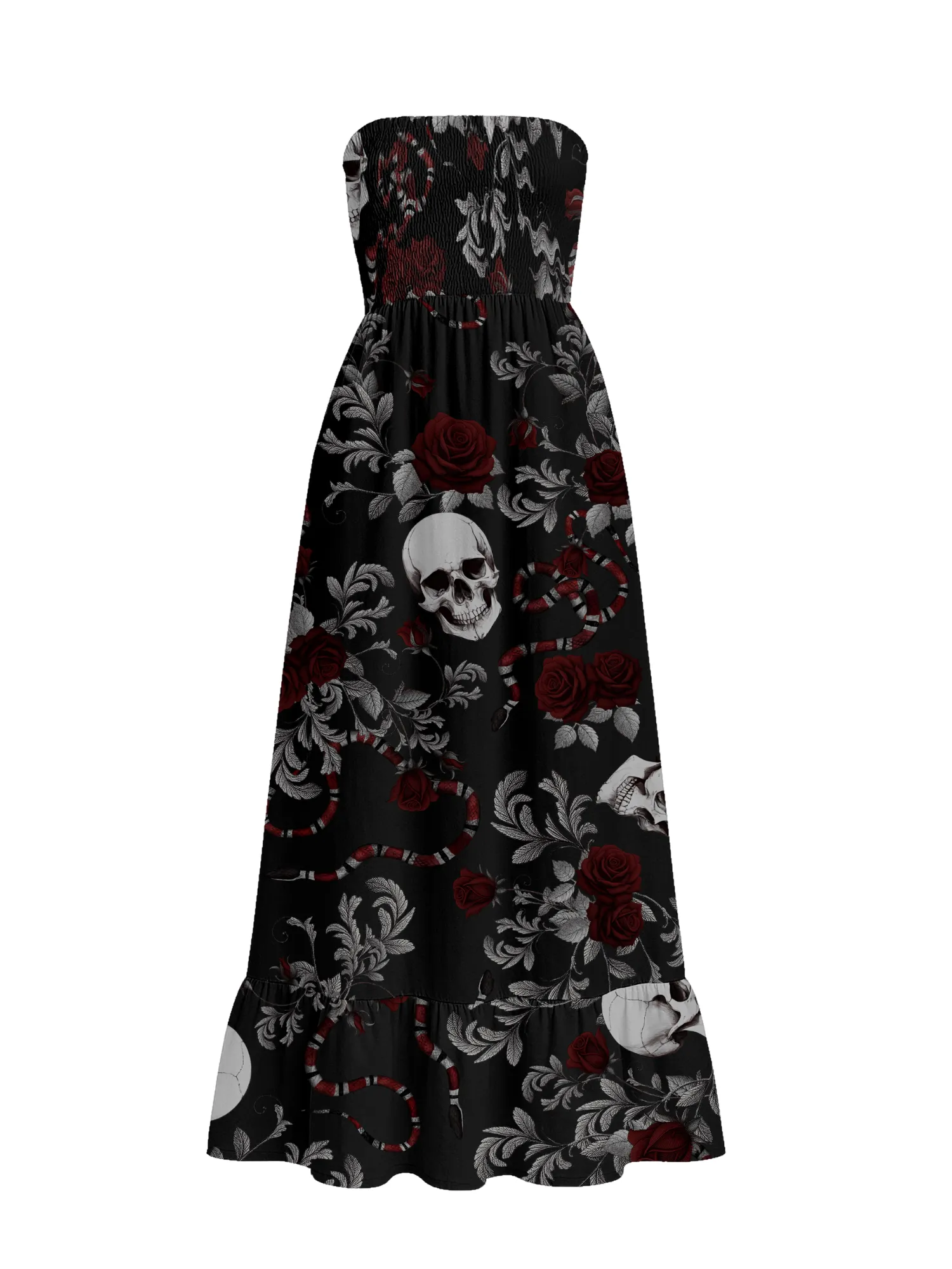 Este vestido longo possui acabamento em lastex no busto inteiro, trazendo um visual descontraído e moderno. Este acabamento proporciona um encaixe perfeito no corpo.